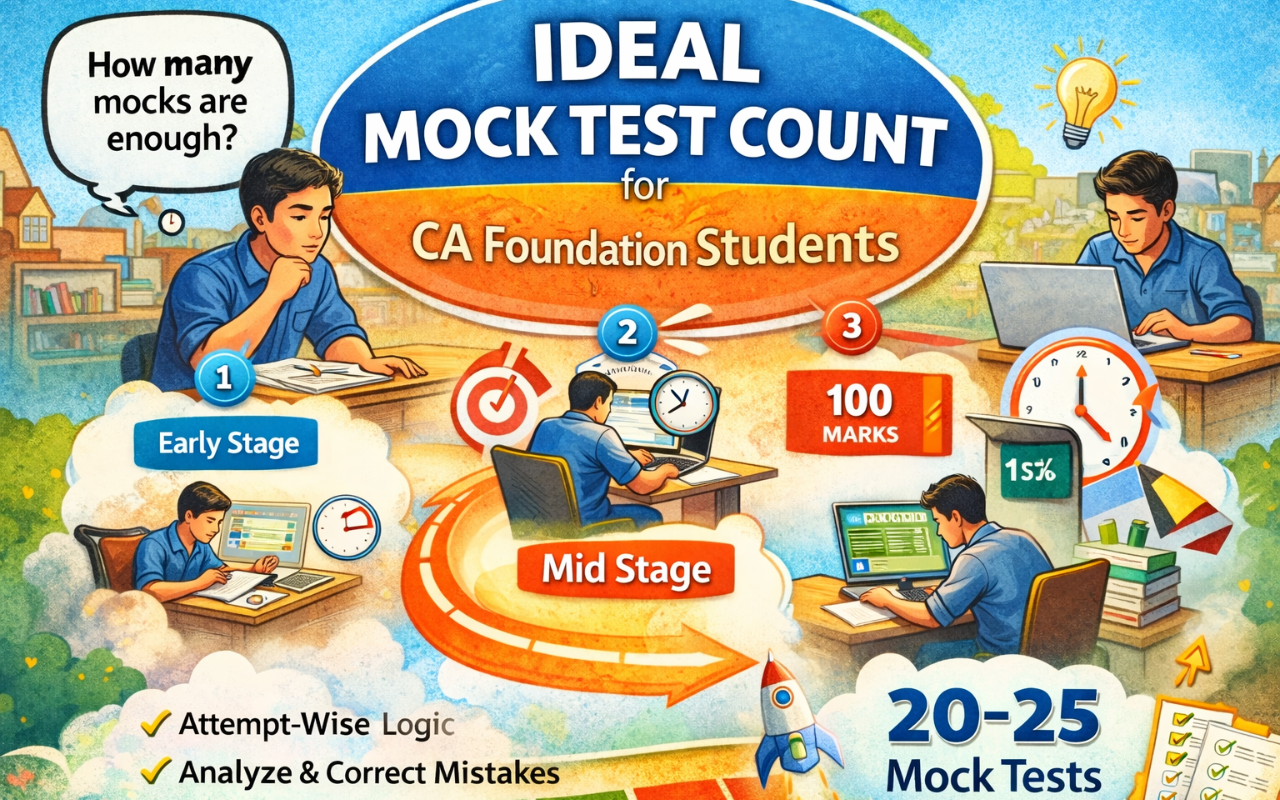 Learn the ideal mock test count for CA Foundation students with attempt-wise logic. Understand how many mocks are enough and when to attempt them.